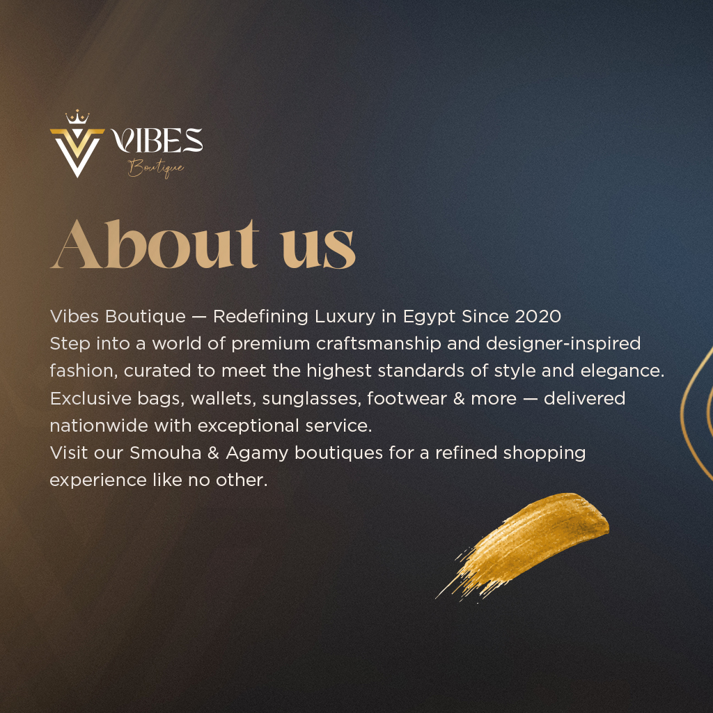 About Vibes Boutique – Luxury Fashion in EgyptFounded in 2020 in Alexandria, Vibes Boutique began with a clear vision — to make luxury fashion accessible for everyone in Egypt. From our first branch in Agamy to our second in Smouha, we’ve grown into one of Egypt’s leading destinations for luxury designer accessories and fashion.At Vibes Boutique, we bring you an exclusive selection of bags, wallets, sunglasses, belts, footwear, and clothing inspired by world-renowned brands such as Louis Vuitton, Hermès, Gucci, Dior, Valentino, and Yves Saint Laurent (YSL). With over 100,000 satisfied customers — including celebrities, artists, and fashion-forward clients — we take pride in offering premium craftsmanship, unbeatable value, and exceptional service.